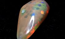 Pre- polished Opal weights 2.60 carats. The play of color range between green, yellow, red and pink with brownish matrix/basic color.