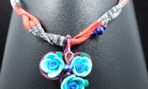 Blue clay roses crystal illusion fabric necklace