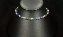 This is a fairly simple and beautiful Crystal Choker with sweet water Pearls as spacer between the variable color of the Crystals.
